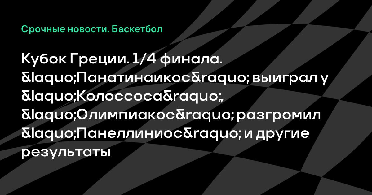 Кубок Греции. 1/4 финала. «Панатинаикос» выиграл у «Колоссоса», «Олимпиакос» разгромил «Панеллиниос» и другие результаты