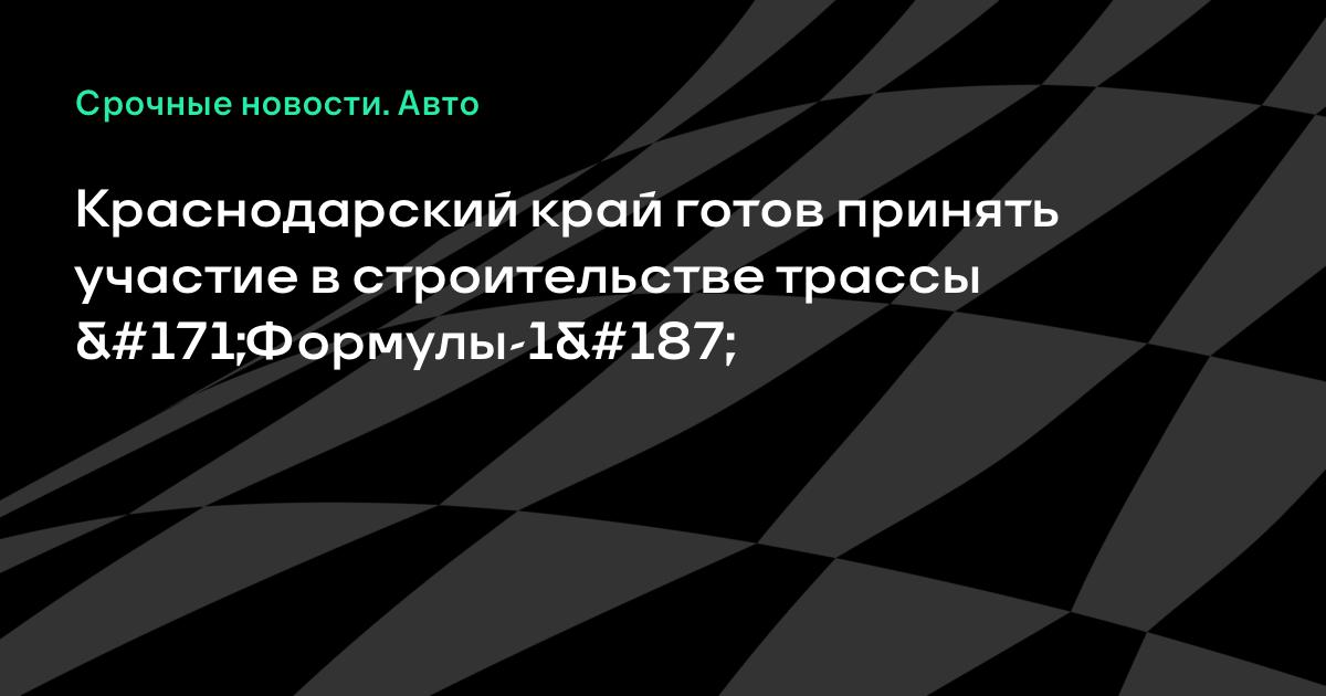 Краснодарский край готов принять участие в строительстве трассы «Формулы-1»