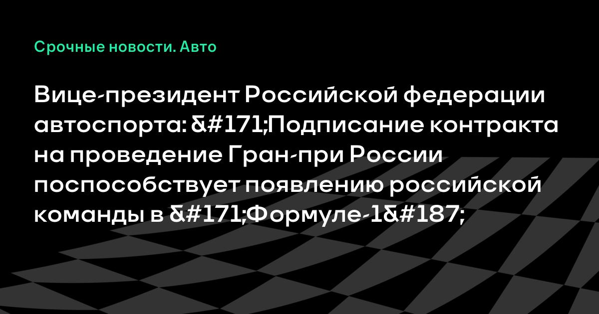 Вице-президент Российской федерации автоспорта: «Подписание контракта на проведение Гран-при России поспособствует появлению российской команды в «Формуле-1»