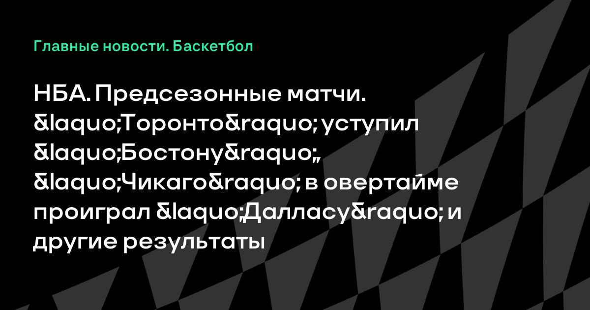 НБА. Предсезонные матчи. «Торонто» уступил «Бостону», «Чикаго» в овертайме проиграл «Далласу» и другие результаты