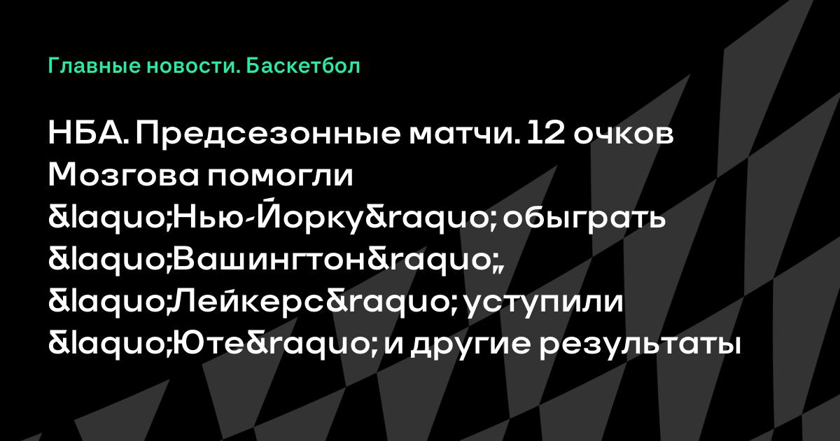 НБА. Предсезонные матчи. 12 очков Мозгова помогли «Нью-Йорку» обыграть «Вашингтон», «Лейкерс» уступили «Юте» и другие результаты