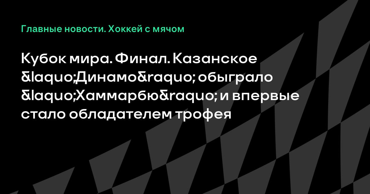 17 октября 2010, 18:57 Кубок мира. Финал. Казанское «Динамо» обыграло «Хаммарбю» и впервые стало обладателем трофея Кубок мира Сандвикен, Швеция Финал Динамо Казань Россия Хаммарбю Швеция 3:1 (2:0) Хоккей с мячом результаты Кубок мира Хаммарбю Ак Барс-Динамо
