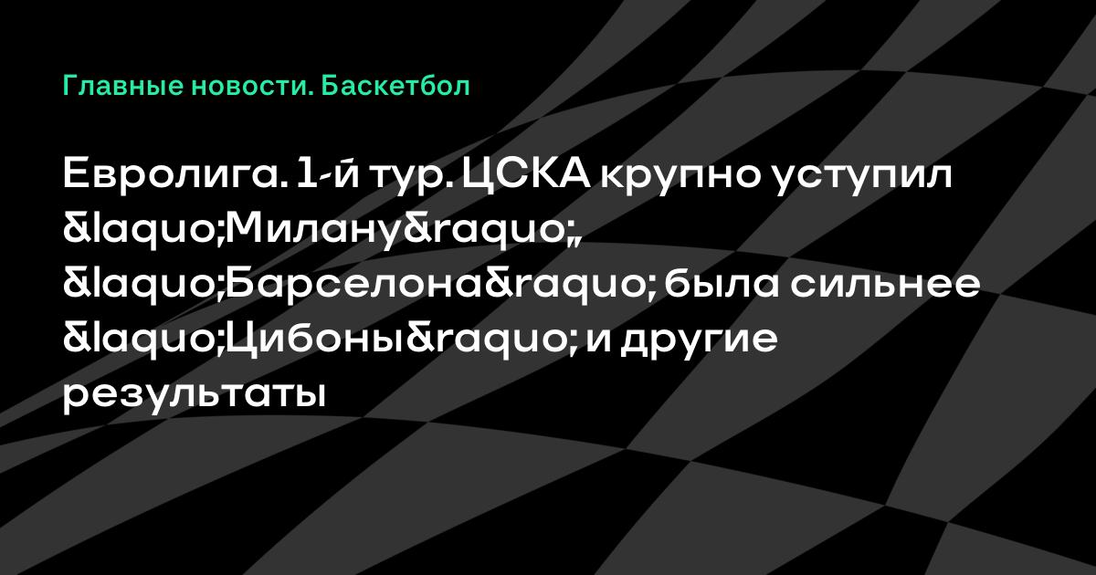 Евролига. 1-й тур. ЦСКА крупно уступил «Милану», «Барселона» была сильнее «Цибоны» и другие результаты