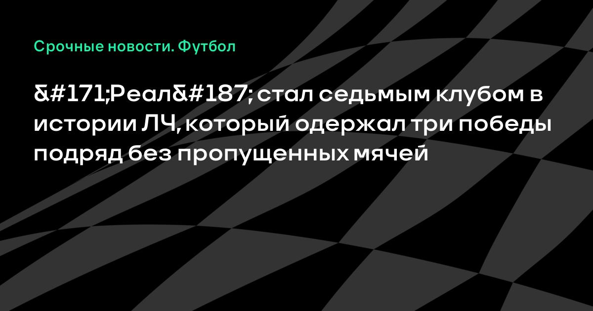«Реал», обыграв в 3-м туре группового этапа Лиги чемпионов «Милан» (2:0), стал 7-м клубом в истории турнира, которому удалось одержать три победы на старте без пропущенных мячей, сообщает твиттер InfostradaLive.