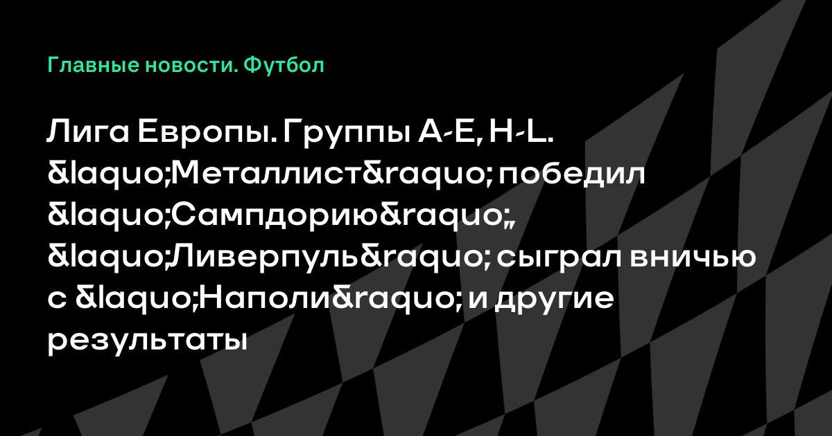 Лига Европы. Группы А-Е, H-L. «Металлист» победил «Сампдорию», «Ливерпуль» сыграл вничью с «Наполи» и другие результаты