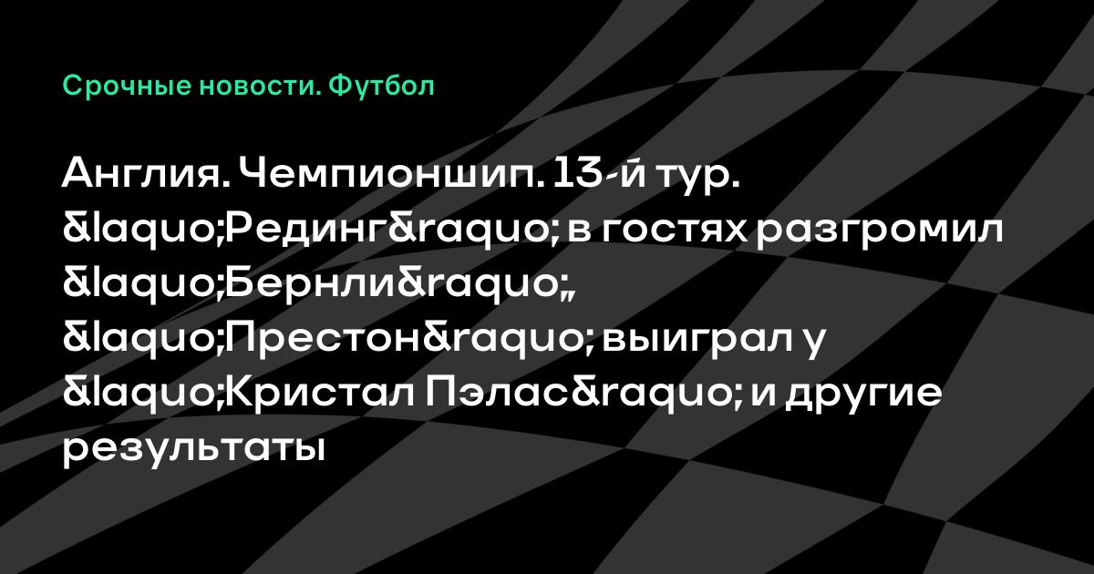 Англия. Чемпионшип. 13-й тур. «Рединг» в гостях разгромил «Бернли», «Престон» выиграл у «Кристал Пэлас» и другие результаты