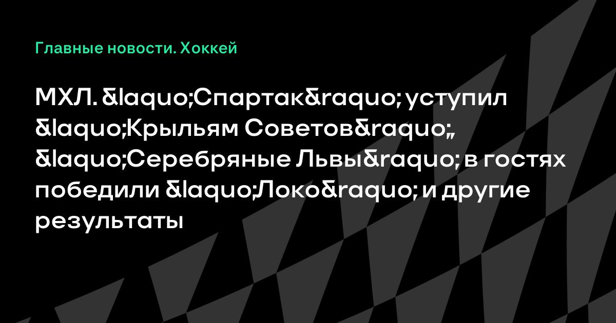 МХЛ. «Спартак» уступил «Крыльям Советов», «Серебряные Львы» в гостях победили «Локо» и другие результаты