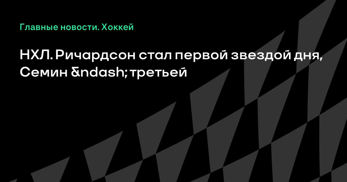 НХЛ. Ричардсон стал первой звездой дня, Семин – третьей