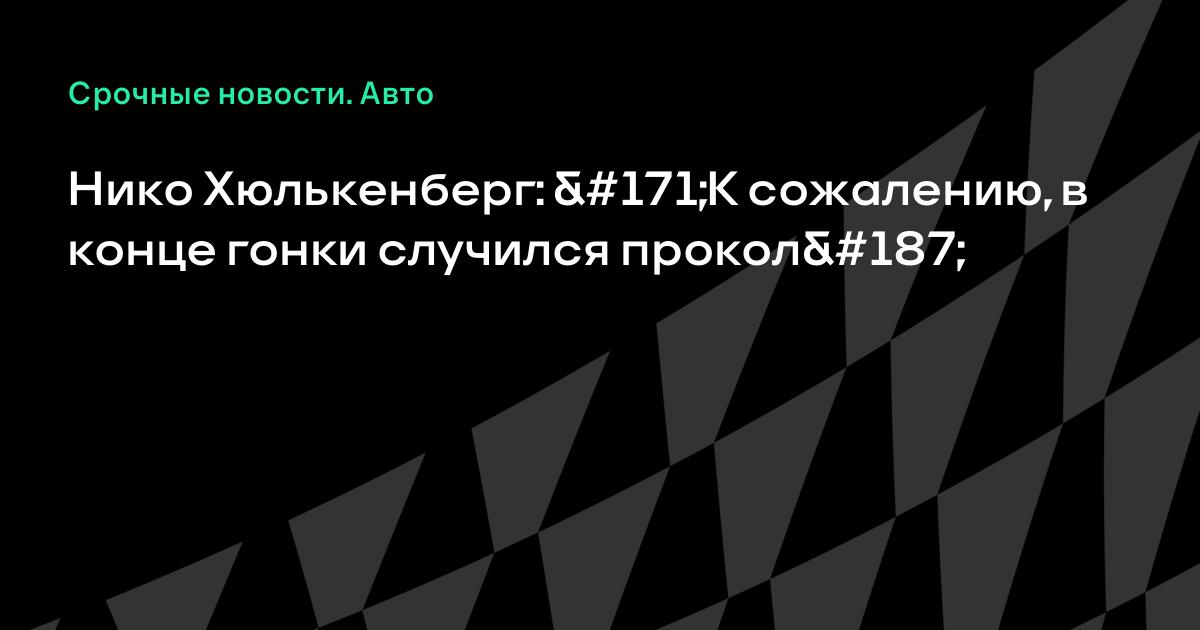 Нико Хюлькенберг: «К сожалению, в конце гонки случился прокол»