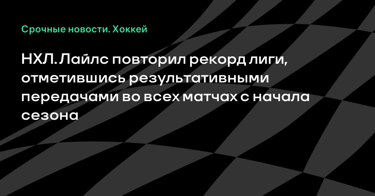 Защитник «Колорадо» Джон-Майкл Лайлс повторил рекорд НХЛ по количеству матчей подряд с результативными передачами с начала сезона, сообщает официальный твиттер клуба.