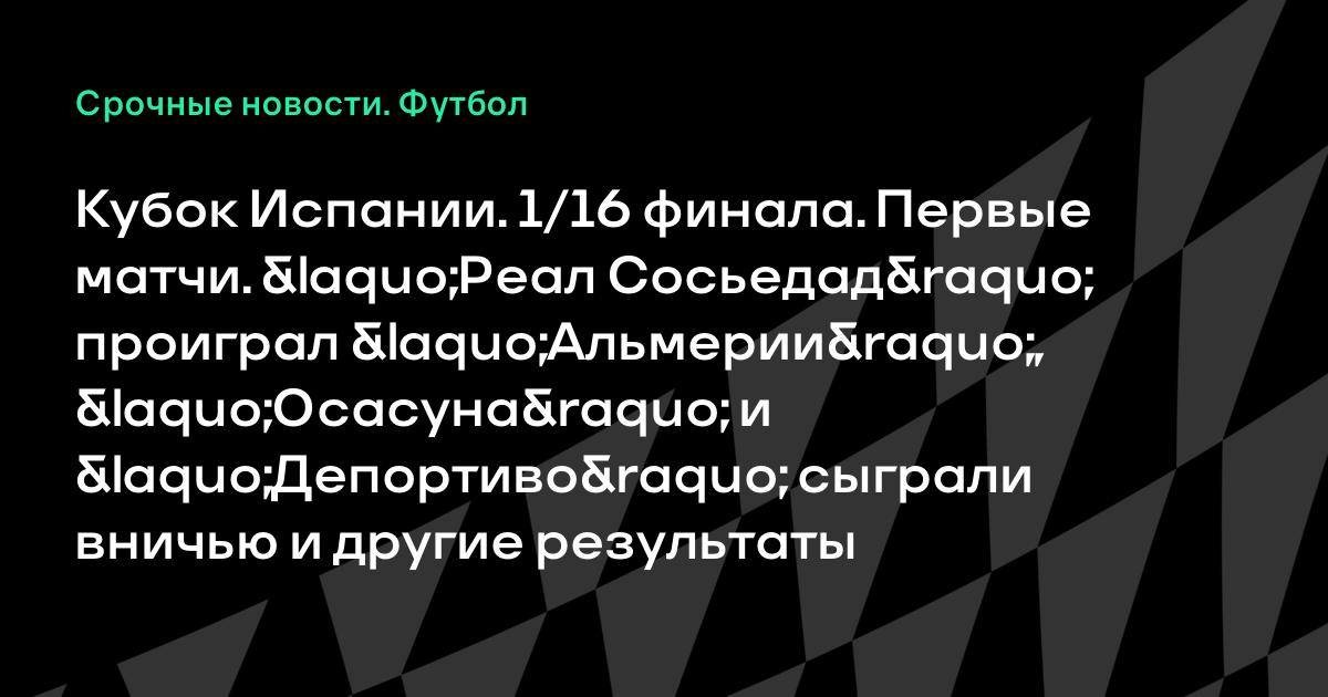 Кубок Испании. 1/16 финала. Первые матчи. «Реал Сосьедад» проиграл «Альмерии», «Осасуна» и «Депортиво» сыграли вничью и другие результаты