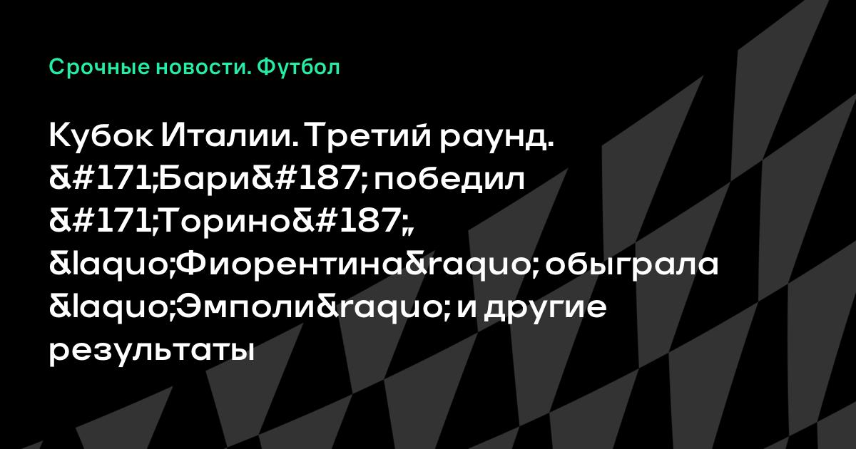 Кубок Италии. Третий раунд. «Бари» победил «Торино», «Фиорентина» обыграла «Эмполи» и другие результаты