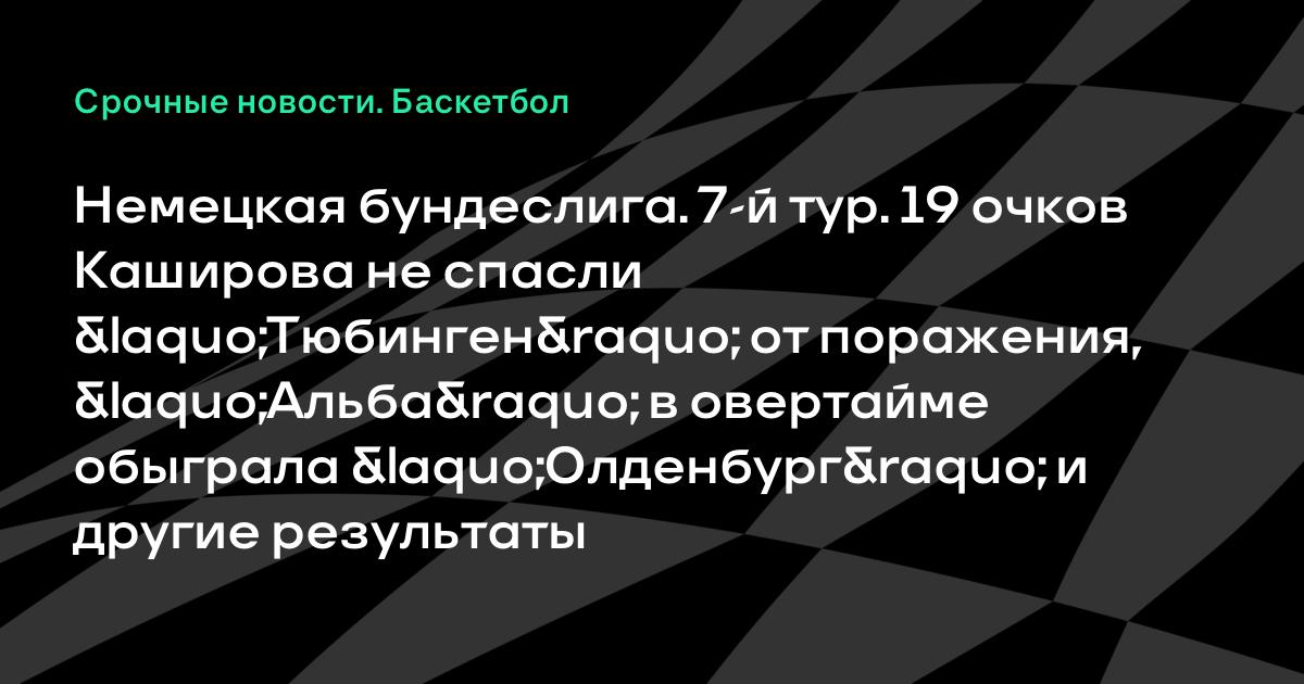Немецкая бундеслига. 7-й тур. 19 очков Каширова не спасли «Тюбинген» от поражения, «Альба» в овертайме обыграла «Олденбург» и другие результаты