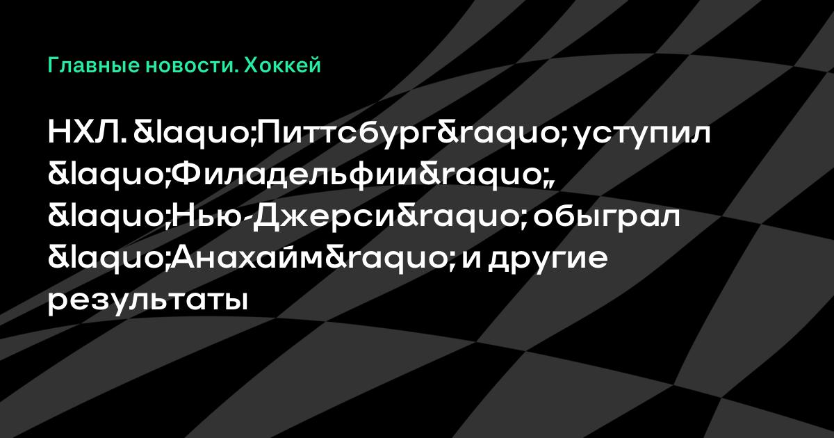 НХЛ. «Питтсбург» уступил «Филадельфии», «Нью-Джерси» обыграл «Анахайм» и другие результаты