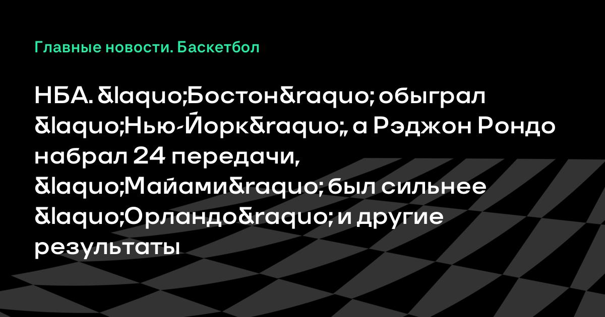 НБА. «Бостон» обыграл «Нью-Йорк», а Рэджон Рондо набрал 24 передачи, «Майами» был сильнее «Орландо» и другие результаты