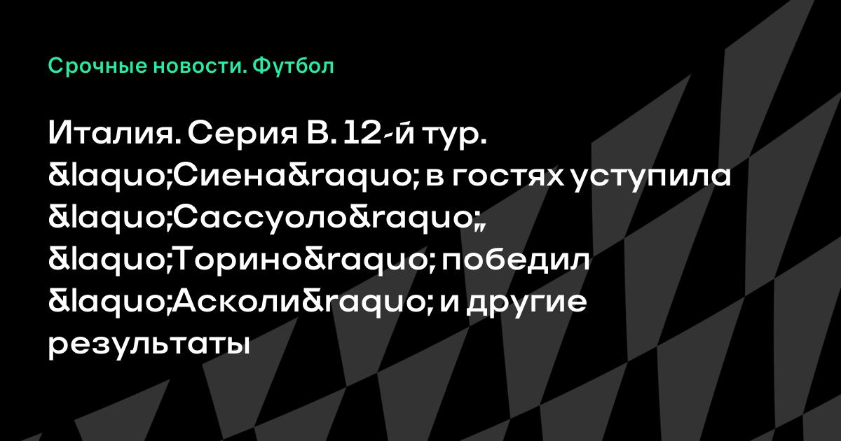 Италия. Серия В. 12-й тур. «Сиена» в гостях уступила «Сассуоло», «Торино» победил «Асколи» и другие результаты