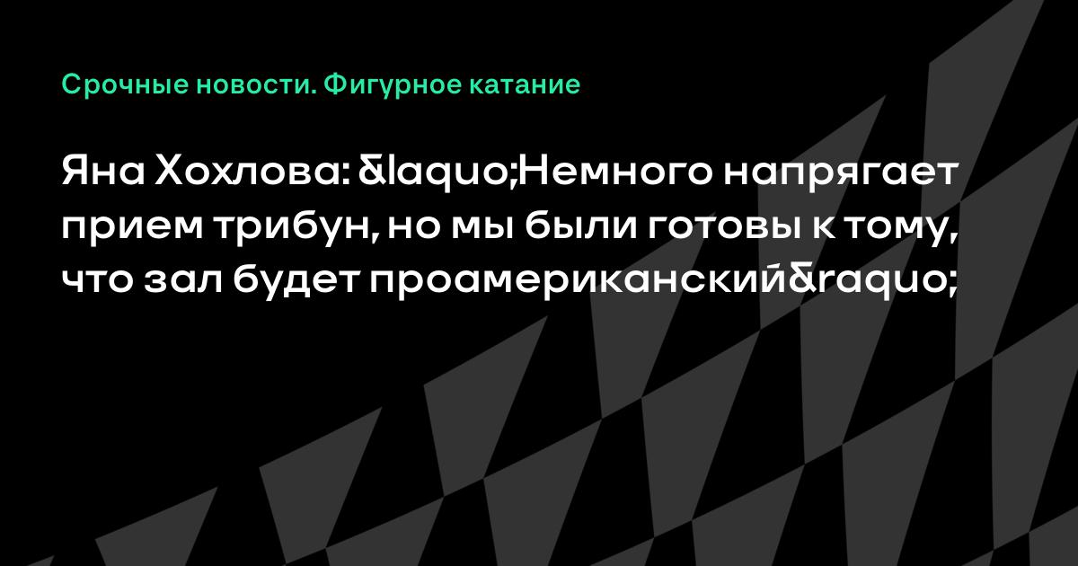 Немного напрягает прием трибун, но мы были готовы к тому, что зал будет проамериканский. Положение спасают российские болельщики, которые все-таки есть на трибунах. Спасибо им за это, как говорится «респект и уважуха»! Настрой у нас по-прежнему боевой, будем бороться до конца!» цитирует Хохлову официальный сайт фигуристов.
