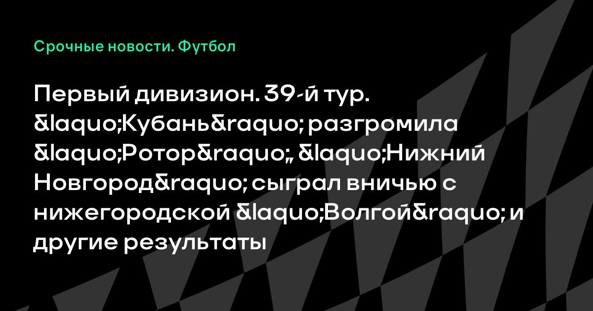 Первый дивизион. 39-й тур. «Кубань» разгромила «Ротор», «Нижний Новгород» сыграл вничью с нижегородской «Волгой» и другие результаты