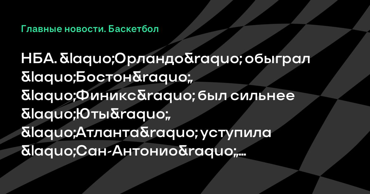 НБА. «Орландо» обыграл «Бостон», «Финикс» был сильнее «Юты», «Атланта» уступила «Сан-Антонио», «Нью-Орлеан» проиграл «Денверу» и другие результаты