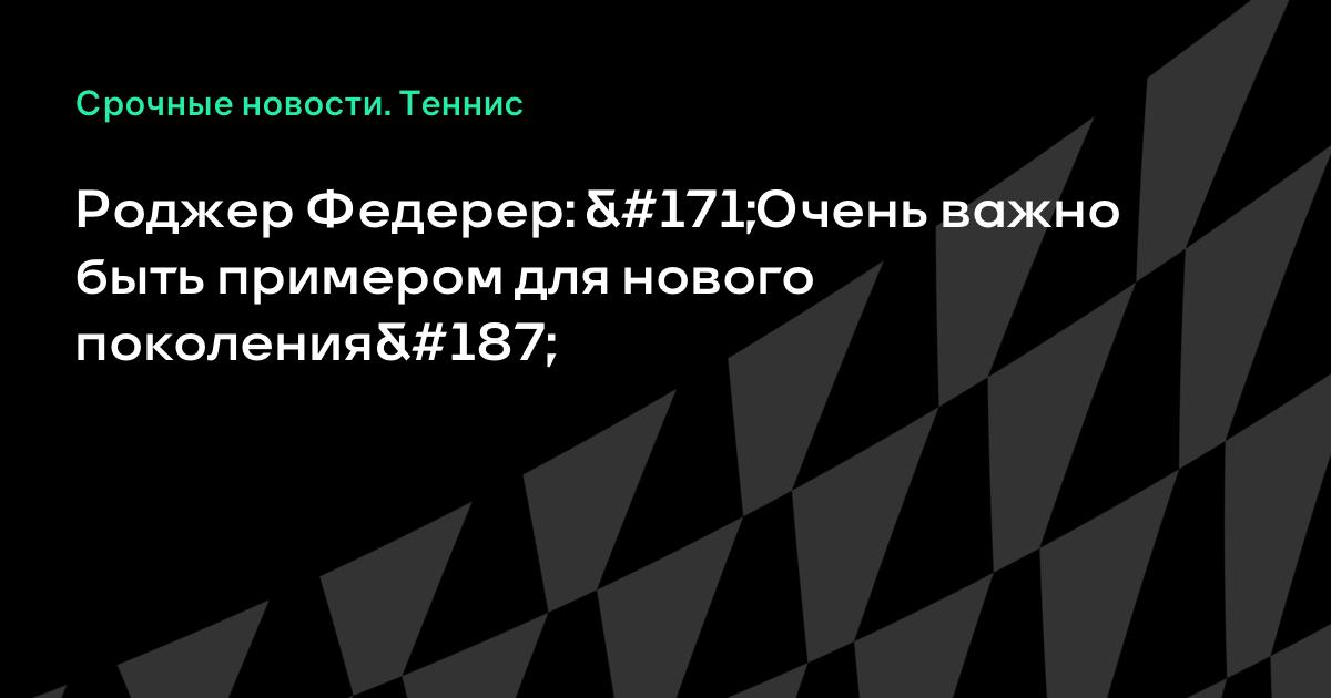 Роджер Федерер: «Очень важно быть примером для нового поколения»