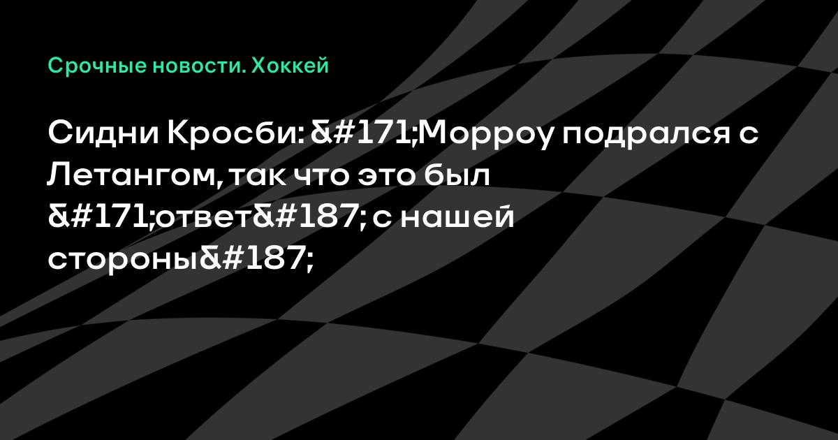 Сидни Кросби: «Морроу подрался с Летангом, так что это был «ответ» с нашей стороны»
