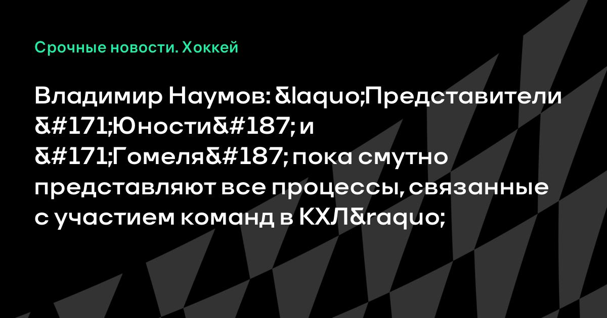 Представители «Юности» и «Гомеля» пока себе смутно представляют все процессы, связанные с участием команд в лиге. Я вижу, что они о многом судят неверно, и сочувственно к ним отношусь. Возможно, что через какое-то время в КХЛ появится второй и третий белорусский клубы, однако под эти шаги нужно подготовить почву, привлечь специалистов, создать базу. Я понимаю, что клубы никогда не будут разделять мою позицию. Но я уверен в том, что смотрю на вещи реально», заявил Наумов в интервью «Интерфаксу».