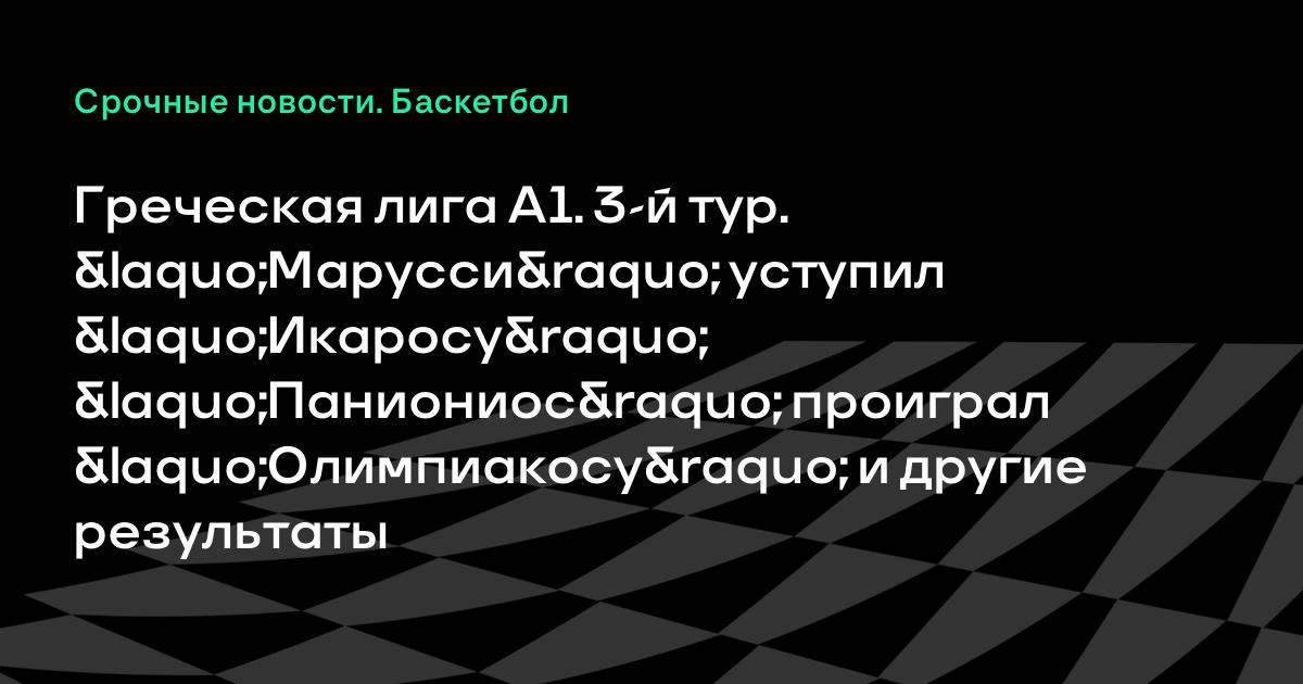 Греческая лига А1. 3-й тур. «Марусси» уступил «Икаросу» «Паниониос» проиграл «Олимпиакосу» и другие результаты