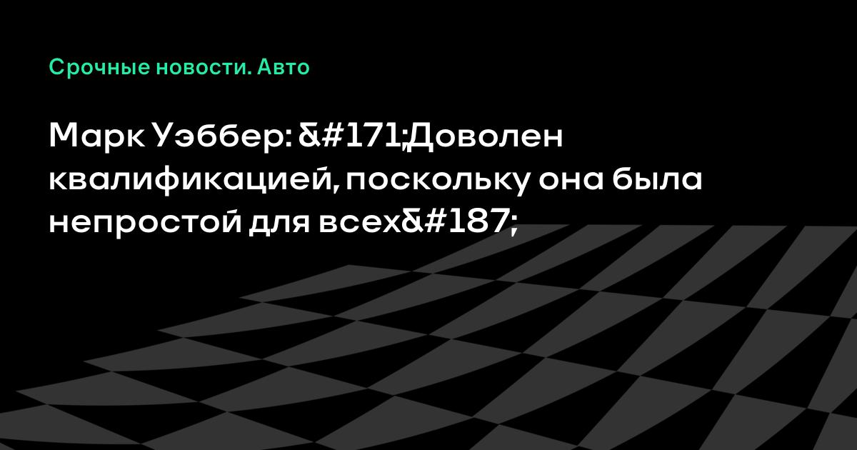 Марк Уэббер: «Доволен квалификацией, поскольку она была непростой для всех»