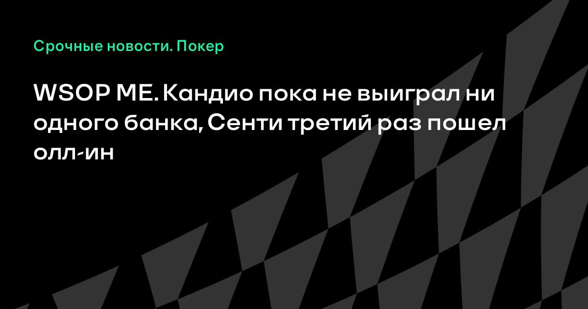 WSOP ME. Кандио пока не выиграл ни одного банка, Сенти третий раз пошел олл-ин