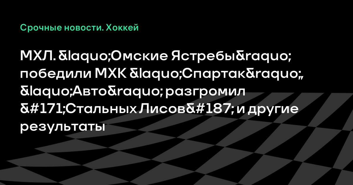 МХЛ. «Омские Ястребы» победили МХК «Спартак», «Авто» разгромил «Стальных Лисов» и другие результаты