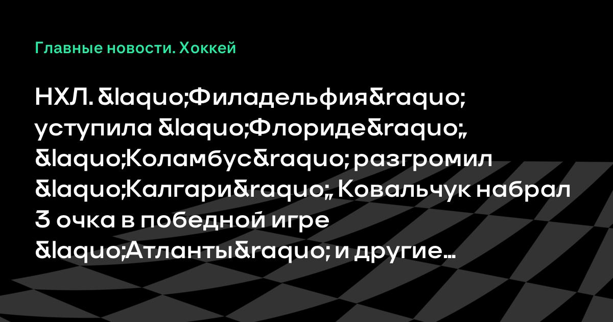 НХЛ. «Филадельфия» уступила «Флориде», «Коламбус» разгромил «Калгари», Ковальчук набрал 3 очка в победной игре «Атланты» и другие результаты