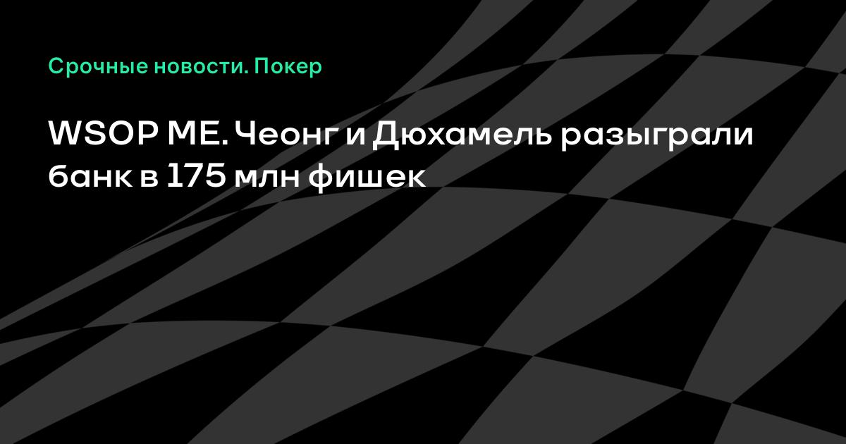 WSOP ME. Чеонг и Дюхамель разыграли банк в 175 млн фишек
