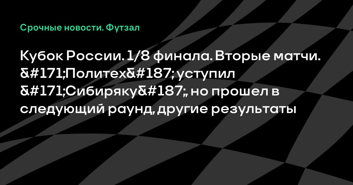 Кубок России. 1/8 финала. Вторые матчи. «Политех» уступил «Сибиряку», но прошел в следующий раунд, другие результаты