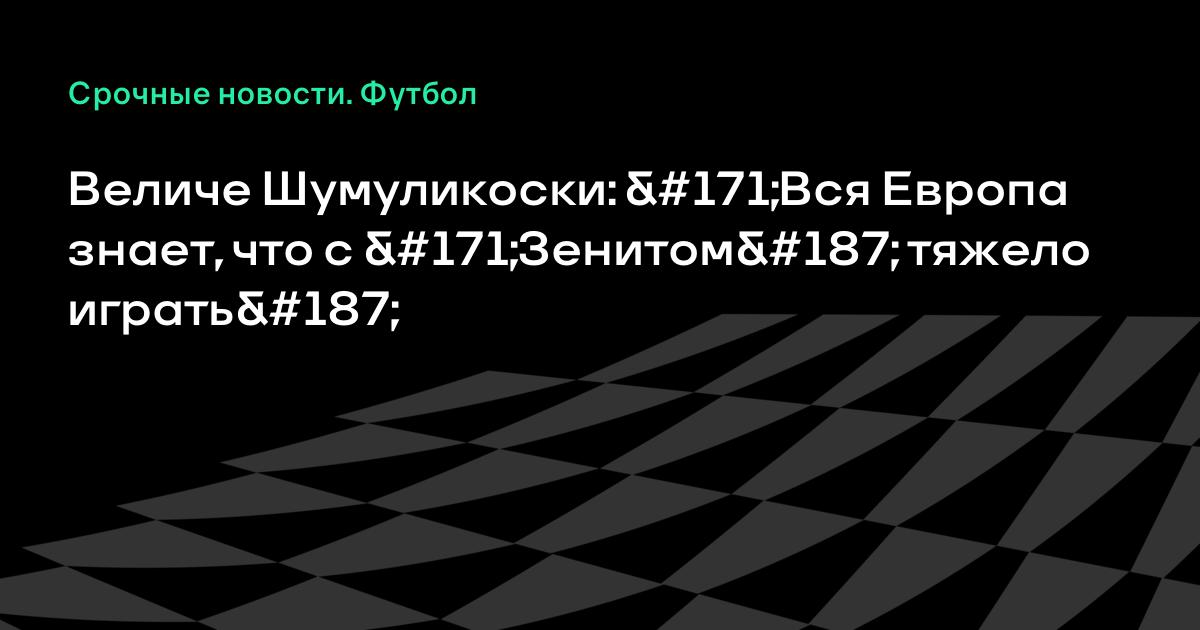 Величе Шумуликоски: «Вся Европа знает, что с «Зенитом» тяжело играть»