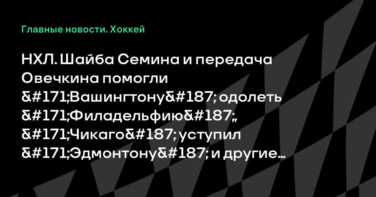 НХЛ. Шайба Семина и передача Овечкина помогли «Вашингтону» одолеть «Филадельфию», «Чикаго» уступил «Эдмонтону» и другие результаты