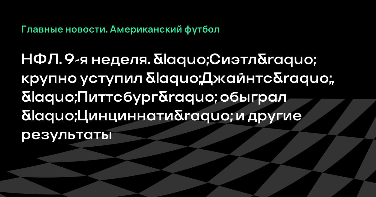 НФЛ. 9-я неделя. «Сиэтл» крупно уступил «Джайнтс», «Питтсбург» обыграл «Цинциннати» и другие результаты