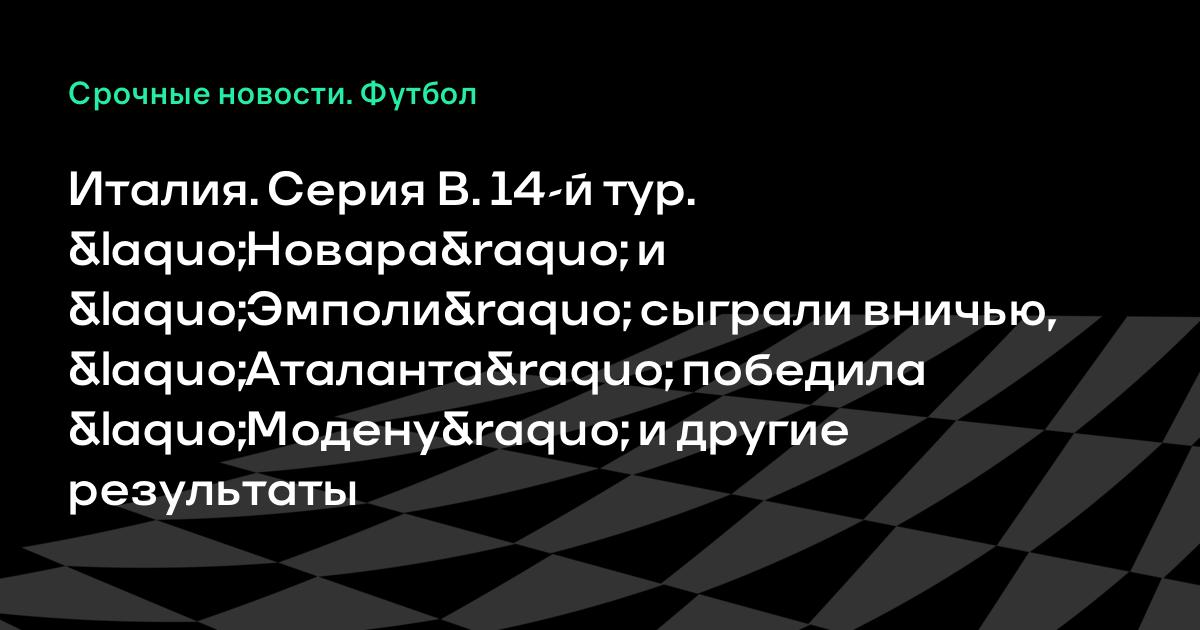 Италия. Серия В. 14-й тур. «Новара» и «Эмполи» сыграли вничью, «Аталанта» победила «Модену» и другие результаты