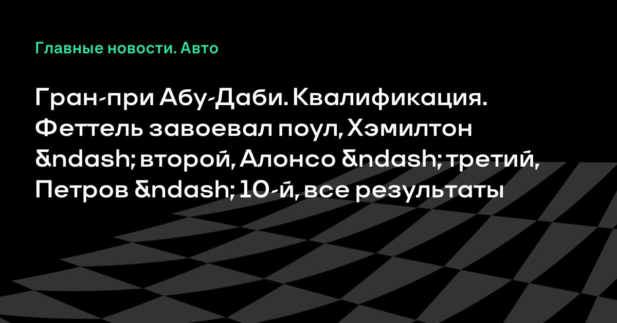 Гран-при Абу-Даби. Квалификация. Феттель завоевал поул, Хэмилтон – второй, Алонсо – третий, Петров – 10-й, все результаты