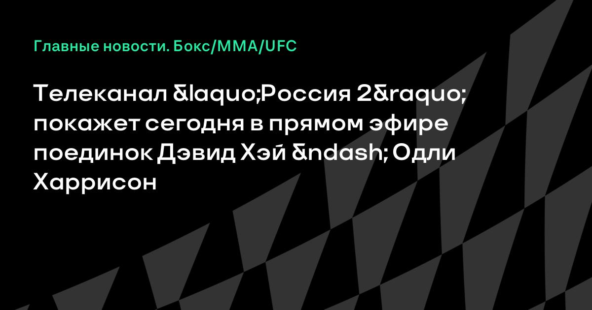 Общедоступный телеканал «Россия 2» покажет сегодня в прямом эфире поединок между чемпионом мира по версии WBA в супертяжелом весе Дэвидом Хэем и олимпийским чемпионом Одли Харрисоном, который состоится в Манчестере (Великобритания).