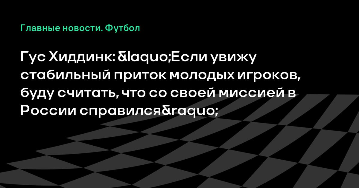 Гус Хиддинк: «Если увижу стабильный приток молодых игроков, буду считать, что со своей миссией в России справился»