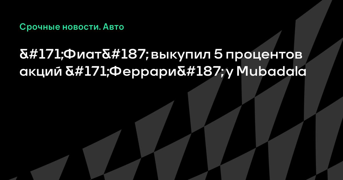 Итальянский автоконцерн «Фиат» выкупил 5 процентов акций «Феррари» у инвестиционной арабской компании Mubadala, сообщает Motorsport со ссылкой на эмиратскую газету The National.