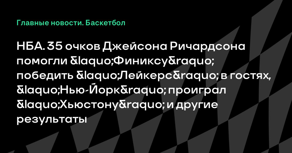 НБА. 35 очков Джейсона Ричардсона помогли «Финиксу» победить «Лейкерс» в гостях, «Нью-Йорк» проиграл «Хьюстону» и другие результаты