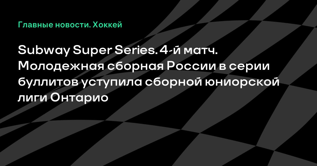 Subway Super Series. 4-й матч. Молодежная сборная России в серии буллитов уступила сборной юниорской лиги Онтарио