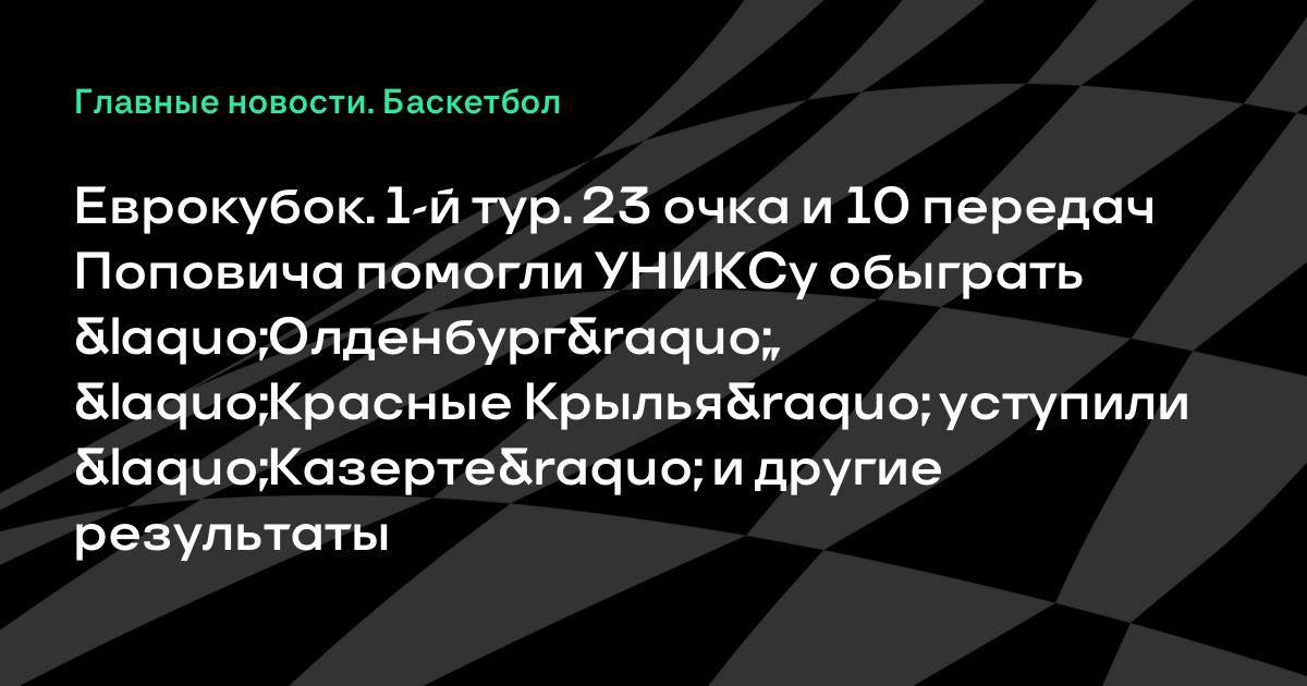 Еврокубок. 1-й тур. 23 очка и 10 передач Поповича помогли УНИКСу обыграть «Олденбург», «Красные Крылья» уступили «Казерте» и другие результаты