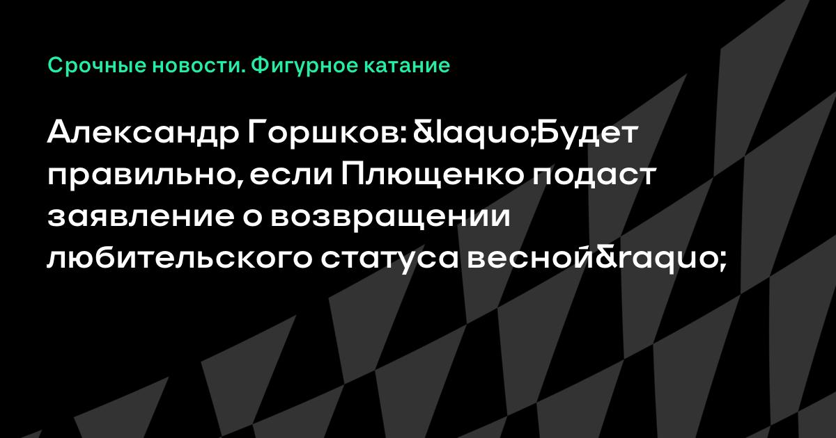 Александр Горшков: «Будет правильно, если Плющенко подаст заявление о возвращении любительского статуса весной»