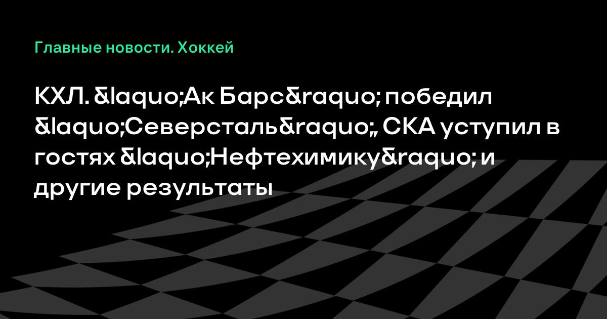 КХЛ. «Ак Барс» победил «Северсталь», СКА уступил в гостях «Нефтехимику» и другие результаты
