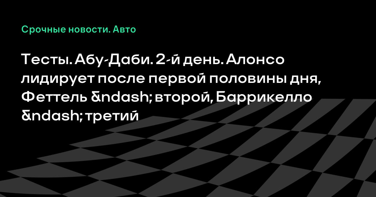 Тесты. Абу-Даби. 2-й день. Алонсо лидирует после первой половины дня, Феттель – второй, Баррикелло – третий