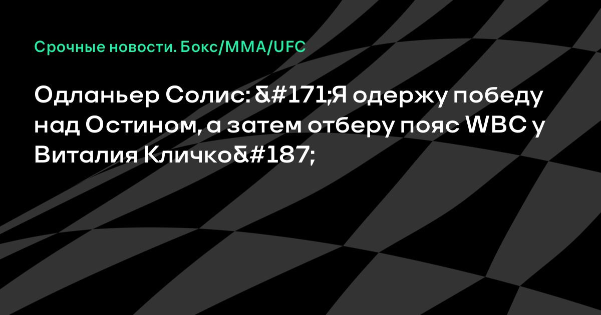 «С тех пор как WBC постановил, что победитель нашего с Остином боя в течение ста дней должен встретиться с Виталием Кличко, у меня появилась отличная возможность побороться за чемпионский титул. Виталий в последнее время делал все, чтобы избежать встречи со мной. Но теперь у него не будет вариантов. Я одержу победу над Остином, а затем отберу пояс WBC у Виталия», цитирует Солиса Boxingscene.com.