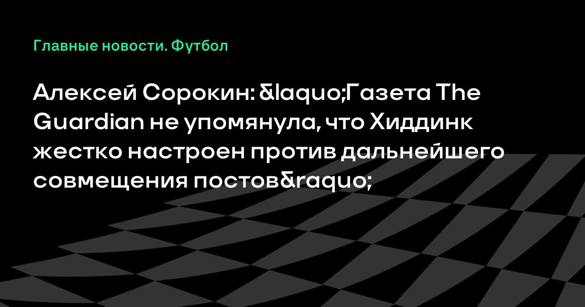 Алексей Сорокин: «Газета The Guardian не упомянула, что Хиддинк жестко настроен против дальнейшего совмещения постов»