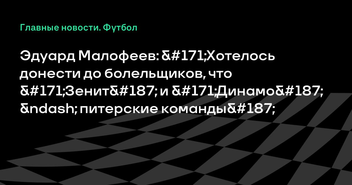 Эдуард Малофеев: «Хотелось донести до болельщиков, что «Зенит» и «Динамо» – питерские команды»